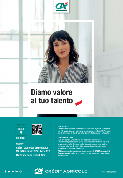 Partecipa al Recruiting Day USiena Crédit Agricole – 9 maggio 2022 ore 10:00