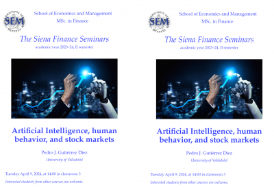 Inside the Siena Finance Seminars, Prof. Pedro J. Gutierréz Diaz from the University of Valladolid will hold the following seminars: