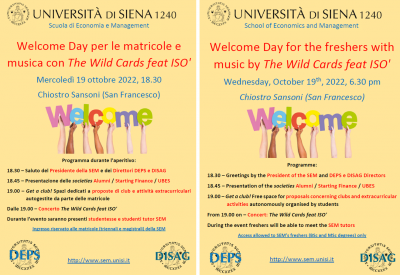 ***WELCOME DAY*** per le matricole e musica con "The Wild Cards feat ISO'"