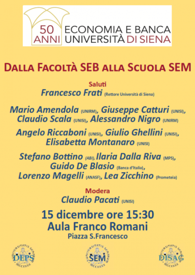 I racconti, i ricordi, la storia dei 50 anni di Economia e Banca a Siena sono al centro delle iniziative organizzate il 15 e 16 dicembre 2017 per festeggiare tale anniversario!